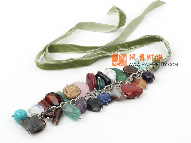 - 三彩玉冲角玛瑙项链 珠链吊坠款