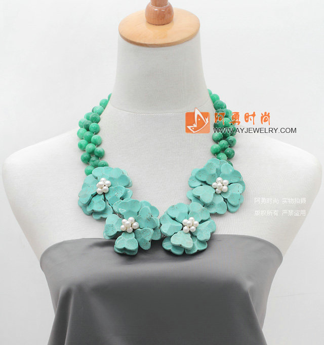 - 珊瑚松石吊坠项链 长软皮绳吊坠款