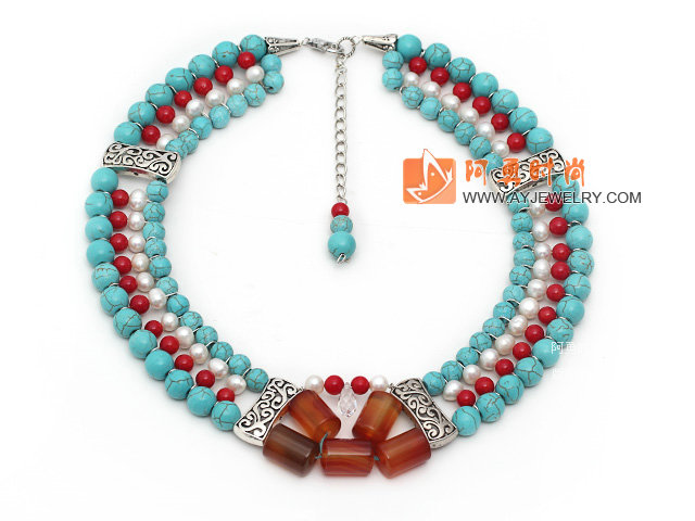 - 绿松石 红玛瑙项链 配合金扣