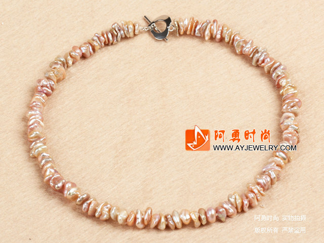 - 10-11mm亮光少纹白粉紫色珍珠项链