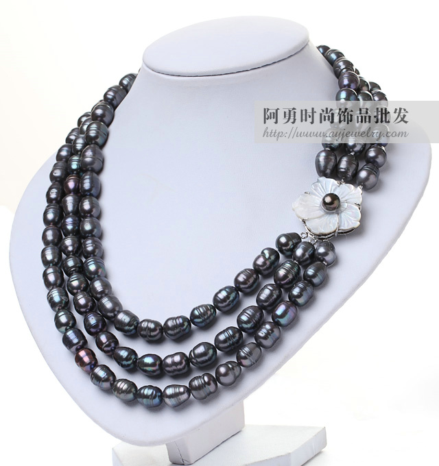 - 10-11mm亮光少纹白粉紫色珍珠项链