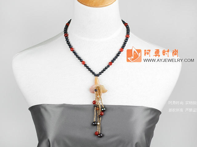 - 珍珠黑红玛瑙颈链项链 唯美款