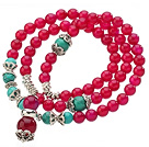 - 西瓜玉髓水钻球手链 单层编织绳款