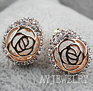 - 镂空玫瑰花镀金镶钻防过敏耳环 耳钉款