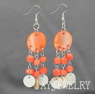 - 水晶浅灰色贝壳花朵耳环 编花款
