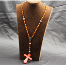 - 浅紫色磨砂玛瑙松石十字架长款项链