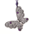- 藏银蝴蝶吊坠 配紫玉皮绳