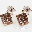 - 镂空玫瑰花镀金镶钻防过敏耳环 耳钉款