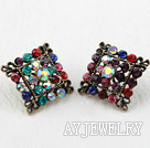 - 镂空玫瑰花镀金镶钻防过敏耳环